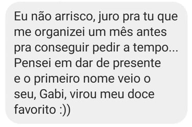 Não precisa de data certa para a entrega, nós indicamos que a encomenda seja feita à partir de 26 semanas de gestação e tendo uma estimativa de data do parto, estaremos preparados para atendê-los o mais rápido possível entregando os brownies diretamente na maternidade ou no endereço combinado!