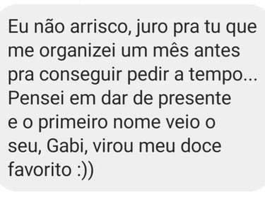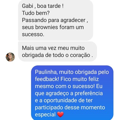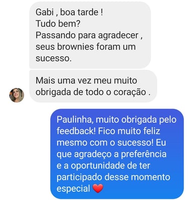 Desde o produto em si (nossos brownies são artesanais e o melhor que você vai comer na vida!) até o cuidado com cada detalhe nas nossas embalagens, personalizações e entrega.